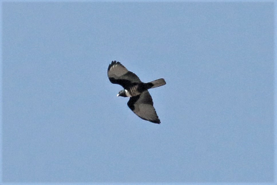 From a distance, this raptor looks just slightly larger than a common rock pigeon. According to raptor experts, the more stripes on its body, indicates that of a female.